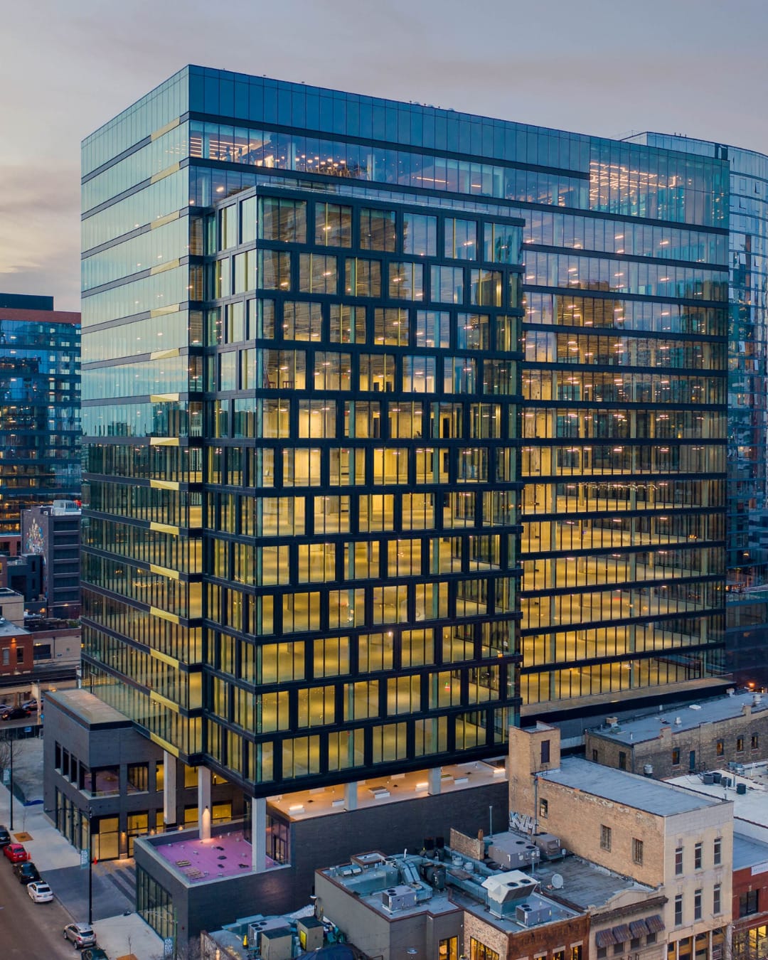Located in Chicago’s Fulton Market district, 167 Green is a 17-story Class A office building developed by Shapack Partners, Focus, and Walton Street Capital. Designed by Gensler and situated along Green Street between Randolph and Lake Streets, the building spans nearly a full city block and totals 750,000 square feet of office and retail space.